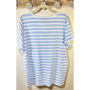 Lane Bryant Classic Flutter Sleeve Adjustable Draw Cord Ribbed Tee Blue & White Stripe S:26-28