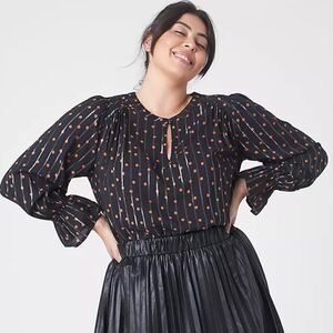 Lane Bryant Classic Long Sleeve Keyhole Neck Metallic Dot Blouse, 12