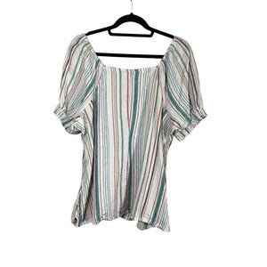 Lane Bryant Coastal Linen Top 18 Red Stripe Boho Retro Euro Summer Preppy Relax