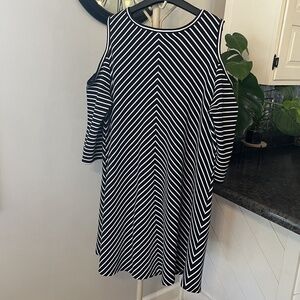 Lane Bryant Cold Shoulder Dress | Size 18/20 | Black White Striped 3/4 Sleeve.