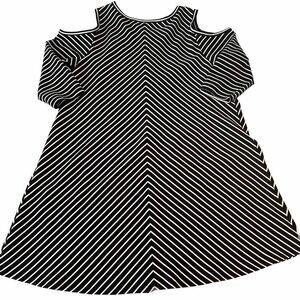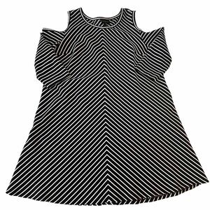 Lane Bryant Cold Shoulder Dress | Size 18/20 | Black White Striped 3/4 Sleeve