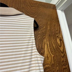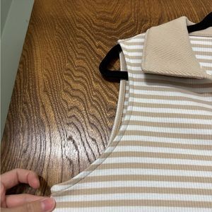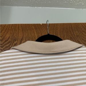 Lane Bryant brand. SIZE 18/20. Tan and white striped. Collar. Ribbed material. Tank top.