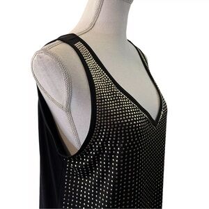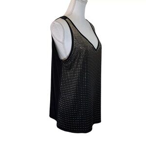 Lane Bryant Collection Black and Gold Sleeveless Studded Blouse XL Slinky Top