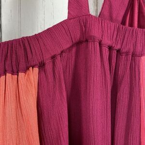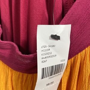 Make a statement in this bold and beautiful Lane Bryant maxi dress. Featuring striking colorblock panels in vibrant shades of burgundy, pink, coral, and orange, this flowy silhouette is perfect for summer getaways, weddings, or casual resort wear. Designed with a halter neckline and crisscross straps at the back, it offers a flattering fit with effortless comfort.