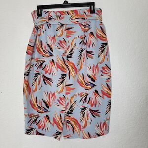 Lane Bryant Colorful Feather High-Waisted Knee Length Belted Pencil Skirt 14