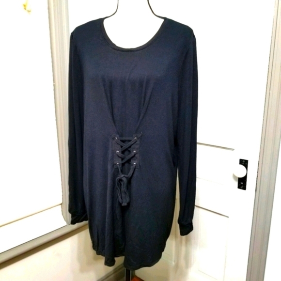 Lane Bryant Corset Waist Black Jersey Knit Tunic Top size 14/16