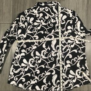 Perfect fit, open v-neck can be worn buttoned all the way up, touch of color under for work or open as a jacket.