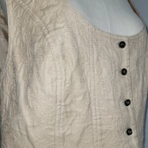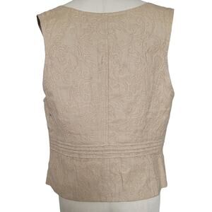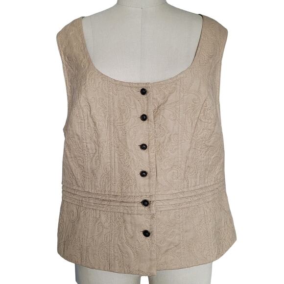 Lane Bryant Cotton Jacquard Button Front Scroll Print Vest Size 14 Tan Boho Chic