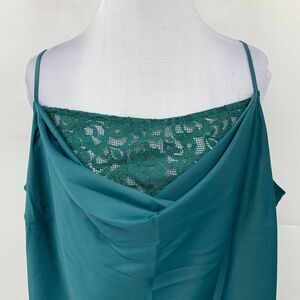 Lane Bryant Cowl Neck Top Womens 20 Teal Satin Lace Underlay Square Neck Blouse