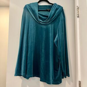 Lane Bryant Cowl-Neck Velour Max Swing Top in a beautiful emerald green velour. Tag size 30/32 plus size. Gently worn.