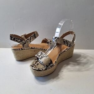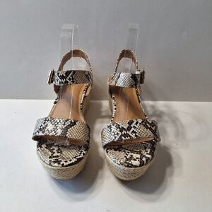 Lane Bryant Cream Black Snakeskin Strappy Platform Wedges