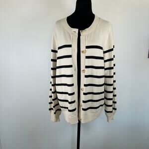 Lane Bryant Cream & Black Striped Cardigan, Sz 14/16
