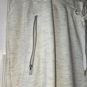 Lane Bryant Cream Silver Metallic Elastic Waist Drawstring Pants