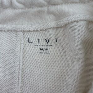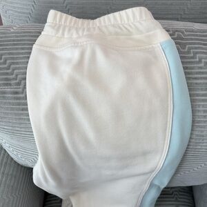 Lane Bryant (Plus Size) Livi Activewear Cream/Ivory & Light Blue Cropped Elastic Waist Joggers w/Front Pockets. Size 14/16 Comfortable joggers with a light blue side stripe. Perfect for relaxed wear. Super soft and comfy.