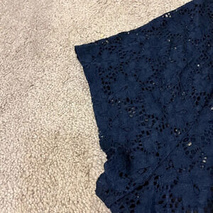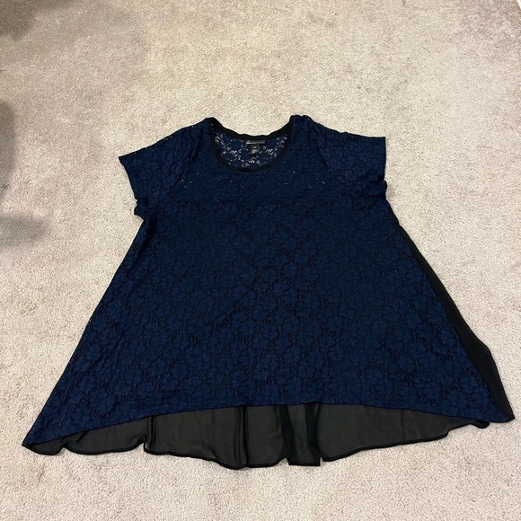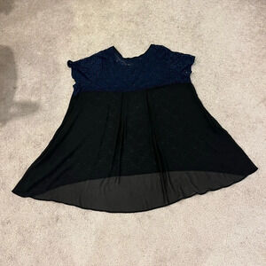 In good shape! Cute lace top with a sheer back! Crewneck and cap sleeves! Flowy fit! Perfect for work or a night out! Offers always welcome!
