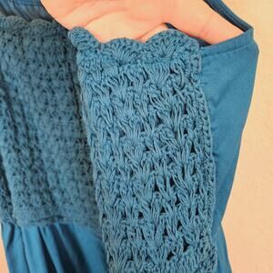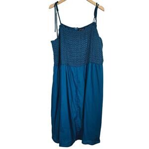 Lane Bryant Crochet Front Dress With Tie Shoulders Ink Blue Plus 18 Boho Casual
