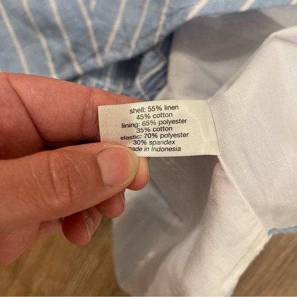 Lane Bryant Cropped Blouse Womens 24 Blue Stripe Linen Cotton Blend Tank Smocked