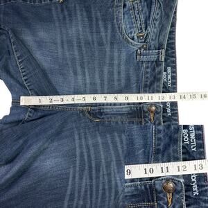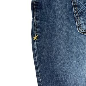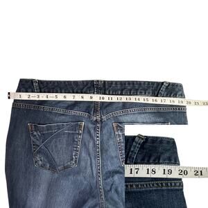 Women's red triangle right fit tech blue jeans from Lane Bryant in Dark Sand Blast. Discontinued. Factory faded and lightly distressed, High rise. Size 18 Avg. 99% Cotton, 1% Spandex. Machine wash cold, normal cycle, tumble dry low. Due to light & screen variations, colors may vary slightly from the images