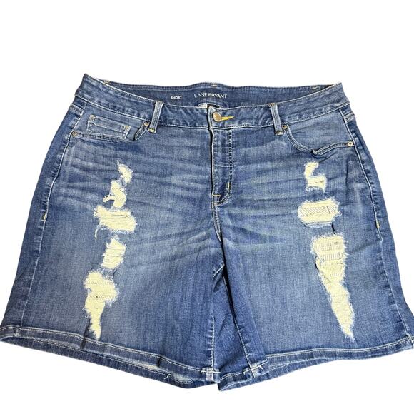 Lane Bryant Distressed Denim Shorts, Medium Wash Stretch, Women's Plus Size 18W