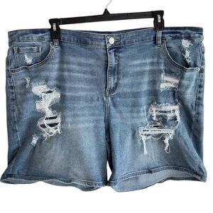 Lane Bryant Distressed Stretch Denim Jean Shorts Women Plus Size 24 Bermuda Boho