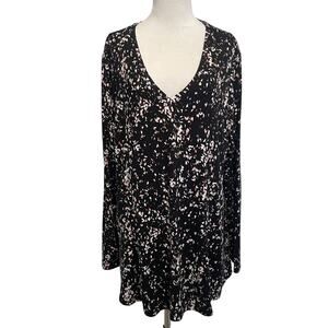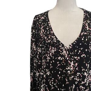 Lane Bryant Ditsy Floral Knit Top Womens Size 18/20 Black Pink V-Neck Tee 2X