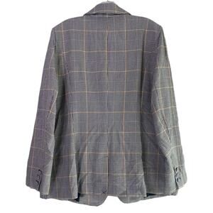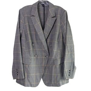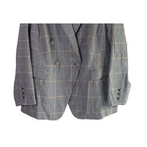 Lane Bryant Double Breasted Houndstooth Plaid Button Blazer Shoulder Pads Long Sleeve Pockets 16 Grey Black Yellow White