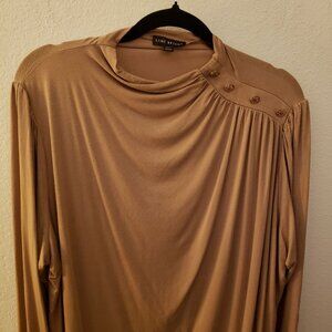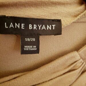 Lane Bryant Draped Neck Tan Pullon Long Sleeve Blouse Top Button Trim 18/20 EUC