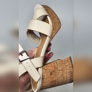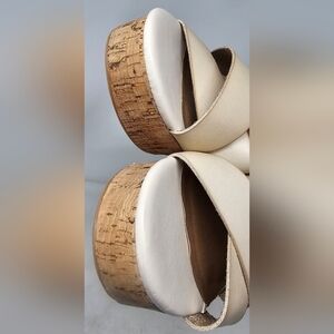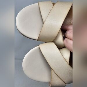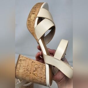 Lane Bryant Dream Cloud Cross-Front Faux Leather Platform Block Heel Beige 10.5W