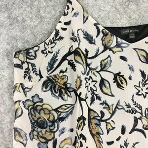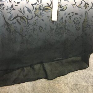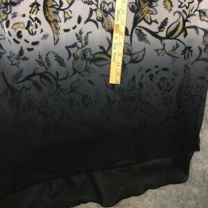 Lane Bryant Dress 14 16 Cocktail Watercolor Floral Ombre Midi Asymmetric Black Sleeveless V Neck Lined Chiffon Shell