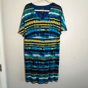 Lane Bryant Dress 18 Blue Aztec Midi Chevron Feminine Tribal Western Boho Retro