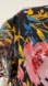 Black and multicolored floral, lightly glittered Swiss dot (for a touch of sparkle), chiffon fabric overlay, short flutter sleeves, lined. Elegant and flowy.