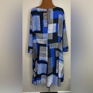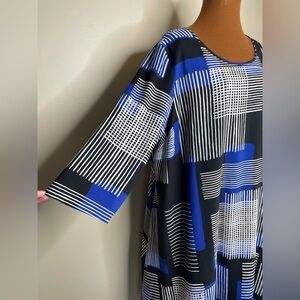 Lane Bryant Dress Geometric Print Blue White Square Size 18/20