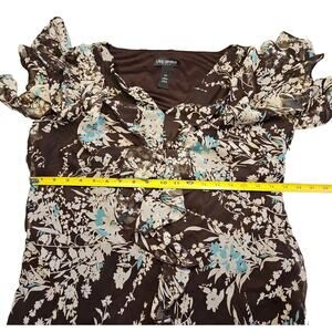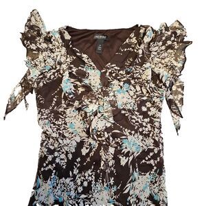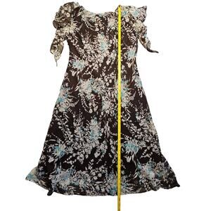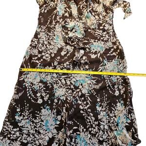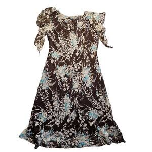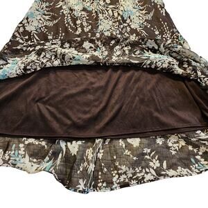 Lane Bryant Dress Sz 16W Floral Maxi Flouncy Ruffled Brown Cream Teal Coquette