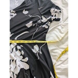 The Lane Bryant Dress in Women's sizes 22/24 is a stylish and versatile addition to any wardrobe. Featuring a flattering fit and flare silhouette with pleats, flutter sleeves and a V-neckline, this dress is perfect for various occasions such as travel, weddings, parties, casual outings, and business events. Made from a comfortable blend of polyester and spandex with a stretchy jersey fabric, it offers a flattering fit and ease of wear. The black and white floral pattern adds a touch of femininity, while the knee-length design makes it suitable for all seasons. With its pullover closure and machine washable care instructions, this dress combines both style and convenience for the modern woman.