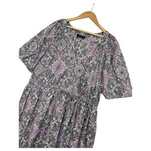 Lane Bryant Dress Womens 24P Purple Midi Geometric Boho Tiered Pockets Peasant