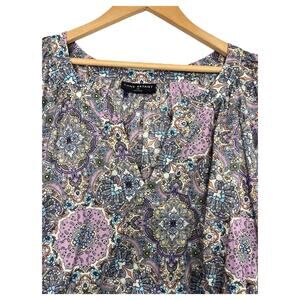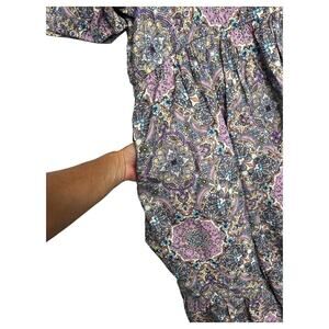 Color/Pattern: Purple multi paisley/medallion print with blue and aqua accents