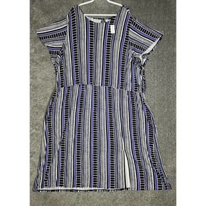 Lane Bryant Dress Womens Size 38/40 Purple Black Short Sleeve Pockets NWT