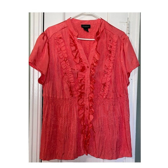 This elegant coral blouse features a stylish ruffled design, perfect for any occasion. Its vibrant color adds a touch of sophistication to your wardrobe.