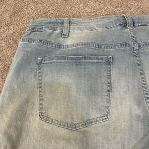 In good shape! Cute light wash with embroidered leaves around pocket! Inseam measures 9 inches. Perfect for spring and summer! Offers always welcome!
