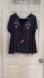 Lane Bryant Embroidered Tassel Tie Boho Blouse Plus Size 18/20 Short Sleeve Peasant Navy White Red Split Neck Cotton Modal