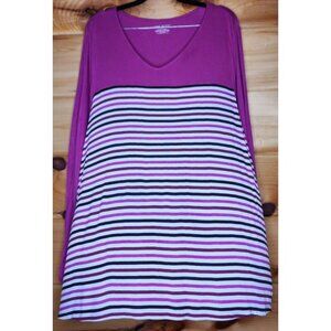 Lane Bryant Essentials Long Sleeve Striped Purple Base Mixed Print Tee Top 22/24