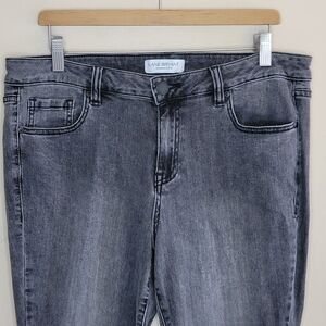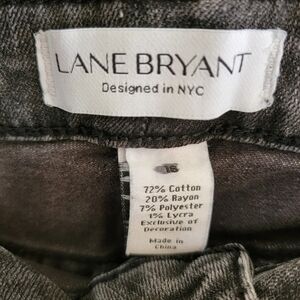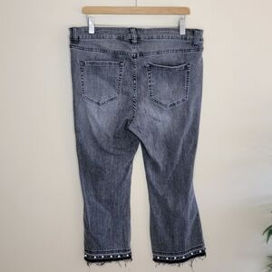 Lane Bryant Faded Black Gray Wash Cropped Jeans Raw Hem with Faux Pearls Size 16