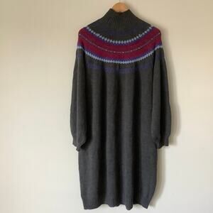 Lane Bryant Fair Isle Heather Gray L/S Mock Turtleneck Sweater Dress 14/16 NWOT