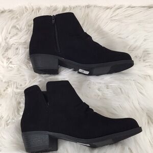 A low, stacked heel, faux suede with a relaxed scrunch, and a side cutout that shows a little ankle. Wear them with your favorite dress for date night or with jeans and your favorite sweater for weekends