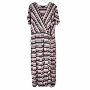 Lane Bryant Faux Wrap Maxi Dress Size 18/20 Striped Short-Sleeve Ruched VGUC