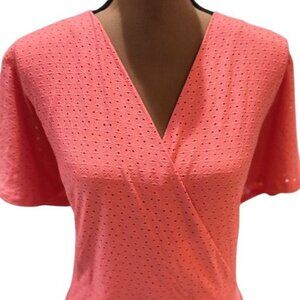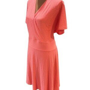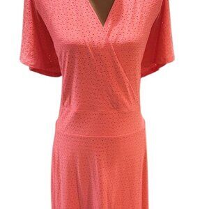 Lane Bryant Faux Wrap Midi Dress with Deep-V and Ruffle Cap Sleeves Covered in Eyelets – Size 26/28