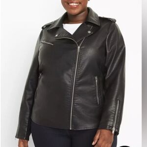 Lane Bryant Faux-Leather Moto Stretch Sleeve Jacket Size 18/20