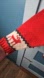 Vibrant red sweater with green tree patterns. Cream accents with reindeer design. Perfect for holiday cheer. Ramie, acrylic, nylon, wool blend. Beautiful preowned condition. T40