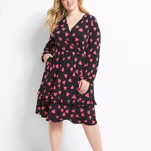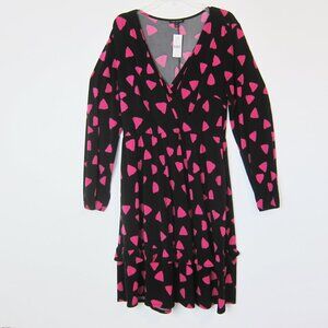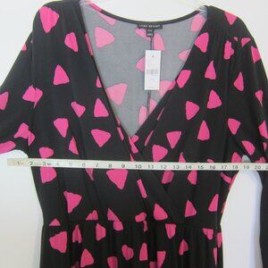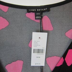 Lane Bryant Fit & Flare Dress 14/16 Black Pink Pockets V-neck Long Sleeves NEW