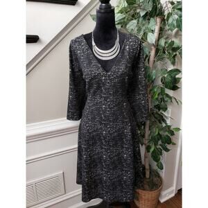 Lane Bryant Fit & Flare Dress Womens 14/16 Black Ponte Knit Patterned Back Zip